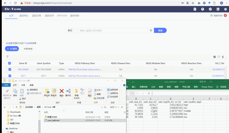 图6 用户根据系统上给出的表格格式,填写好基因信息,并一键上传,即可调用系统上多个小工具进行数据分析。