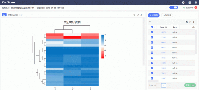 在高分文章中,多维度的图片展示已经成为不可或缺的一环,比如在常规热图中,经常出现需要展示某一类热图功能是什么。如果可以在同一张图中体现第三维度的绘图,就可直接展现同样表达量聚类的基因归属于何种功能。这一点,同样可以在Dr. Tom 2.0系统中轻松实现。